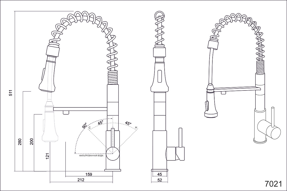 - Высота смесителя: 511мм
