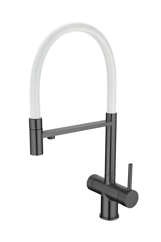 Кухонный смеситель с возможностью подключения фильтра для очистки воды. Фильтрованная вода подается отдельной ручкой через отдельную трубку и не смешивается с водопроводной водой.