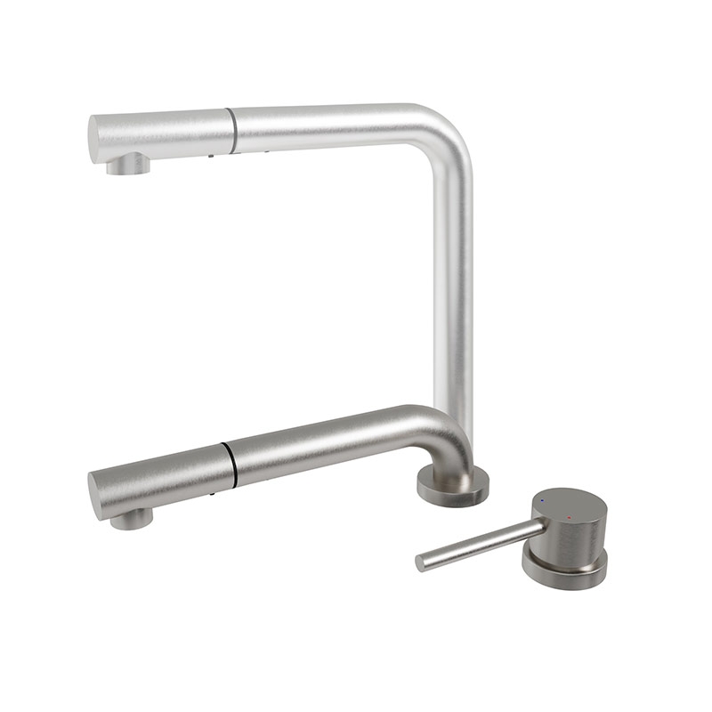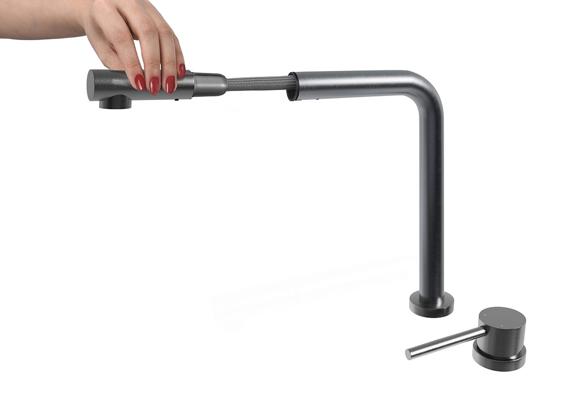 Кухонный смеситель с телескопическим и выдвижным изливом. Телескопический излив позволяет регулировать высоту смесителя и спроектирован для монтажа смесителя под окно и для «скрытых» кухонных моек.